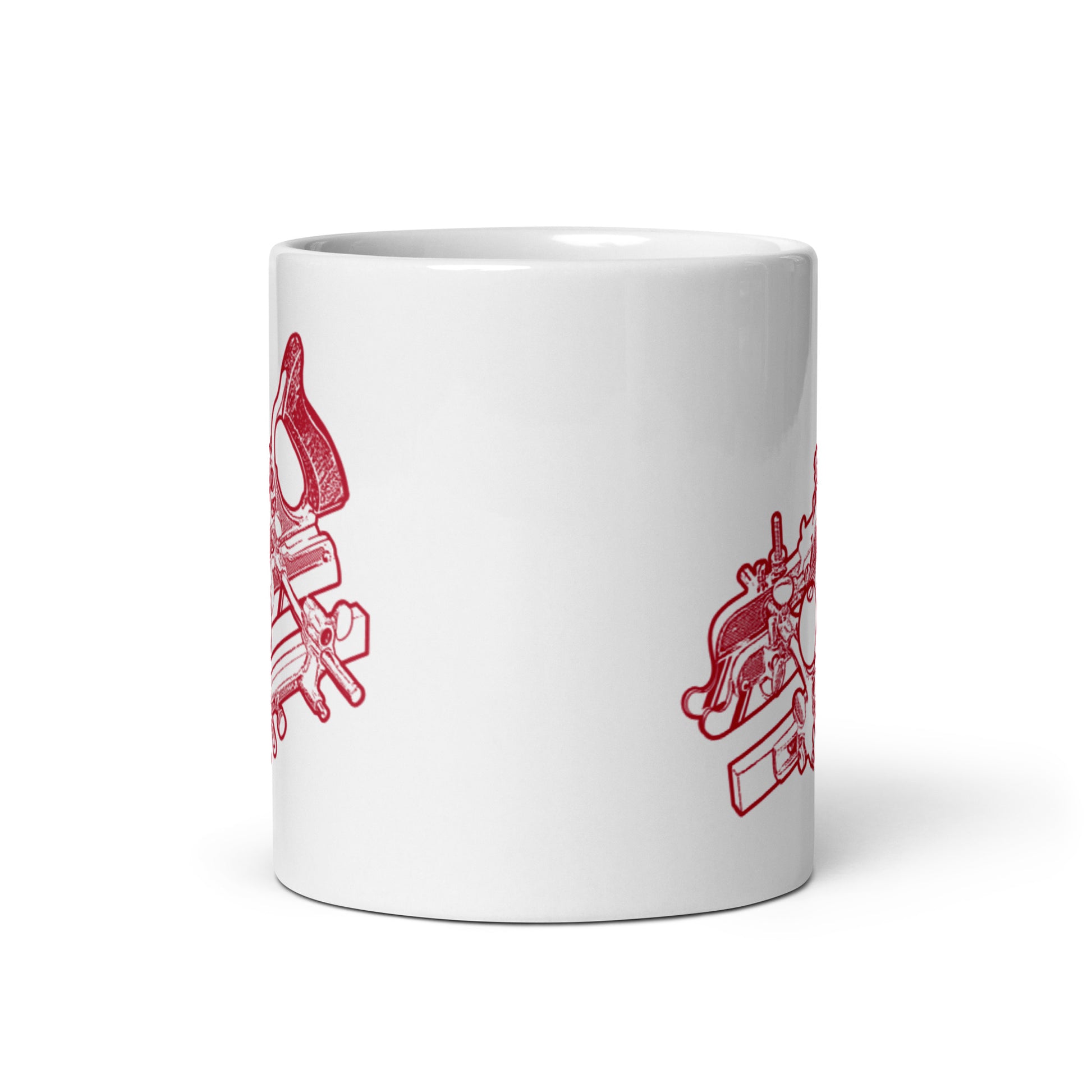 This sturdy white, glossy ceramic mug features our popular artwork of the classic Stanley 45 Combination Plane. It will certainly look amazing sitting on your workbench. Whether you're drinking your morning coffee, evening tea, or something in between—this mug's for you! It's sturdy and glossy with a vivid print that'll withstand the microwave and dishwasher.